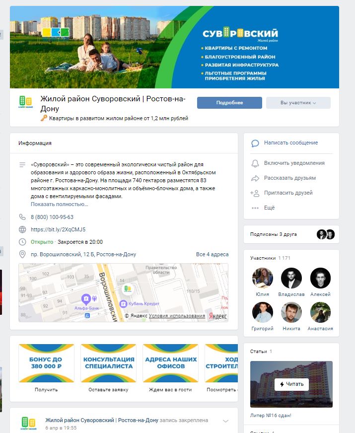 Клиент - застройщик ВКБ-Новостройки. Обратился для продвижения жилого района “Суворовский”.